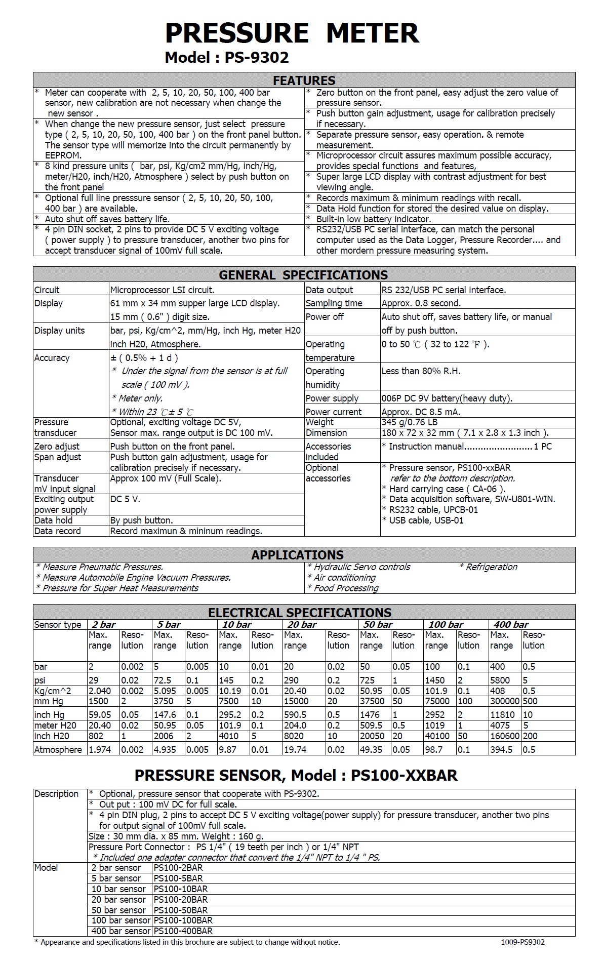 Product Name : | PRESSURE METER - PS-9302 壓力計 |