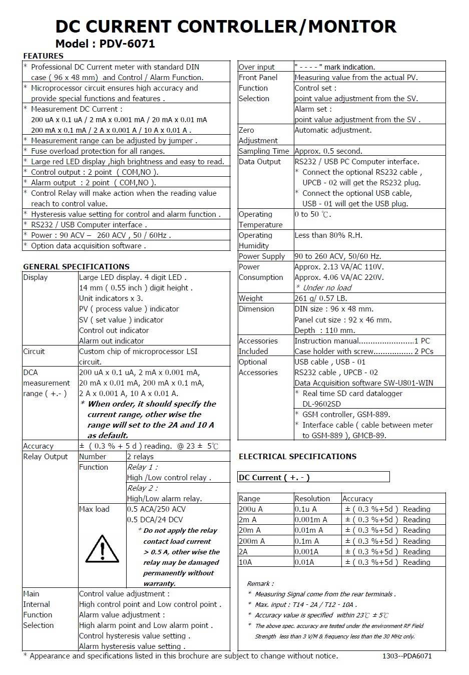 * Control relay output, alarm relay output.