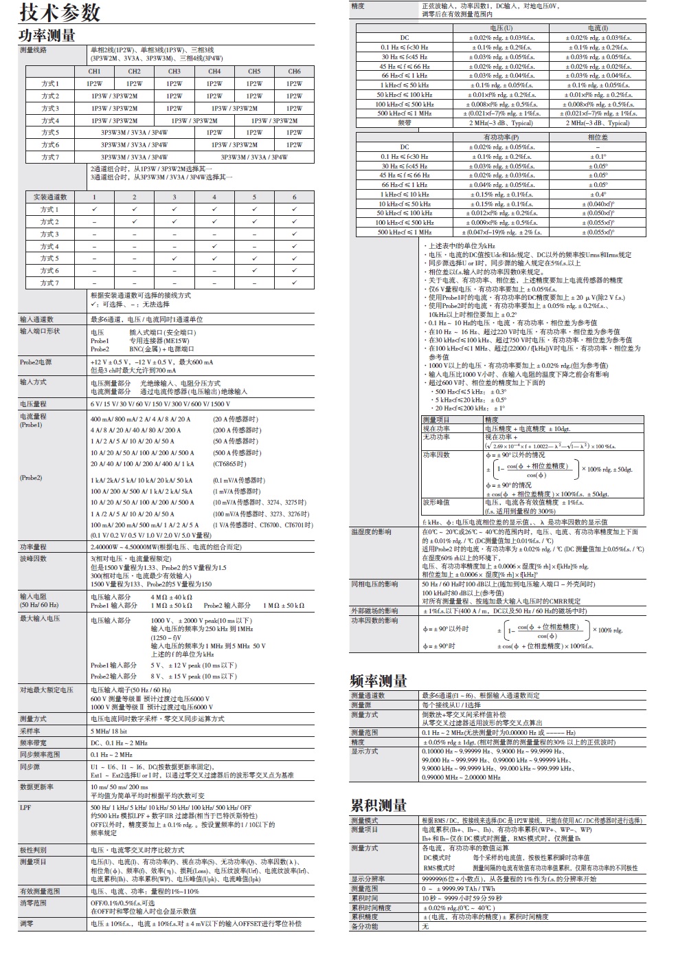 • 功率基本精度±0.075%※1(※实现仅主机精度,加上电流传感器精度达到±0.11%)