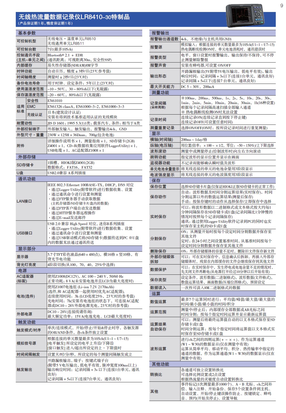 LR8410-30特制品主机 基本参数: