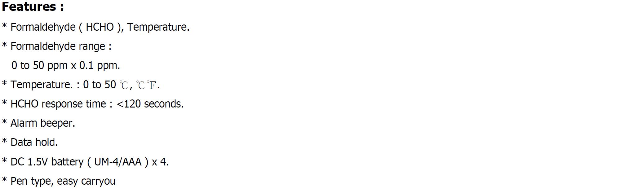 Product Name : | FORMALDEHYDE METER, pen type |