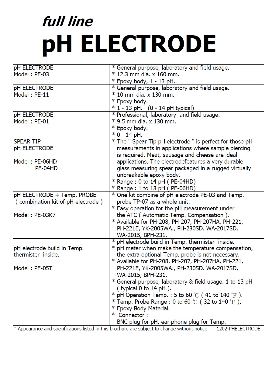 Product Name : | pH ELECTRODE - PE-03 酸鹼度電極棒 |
