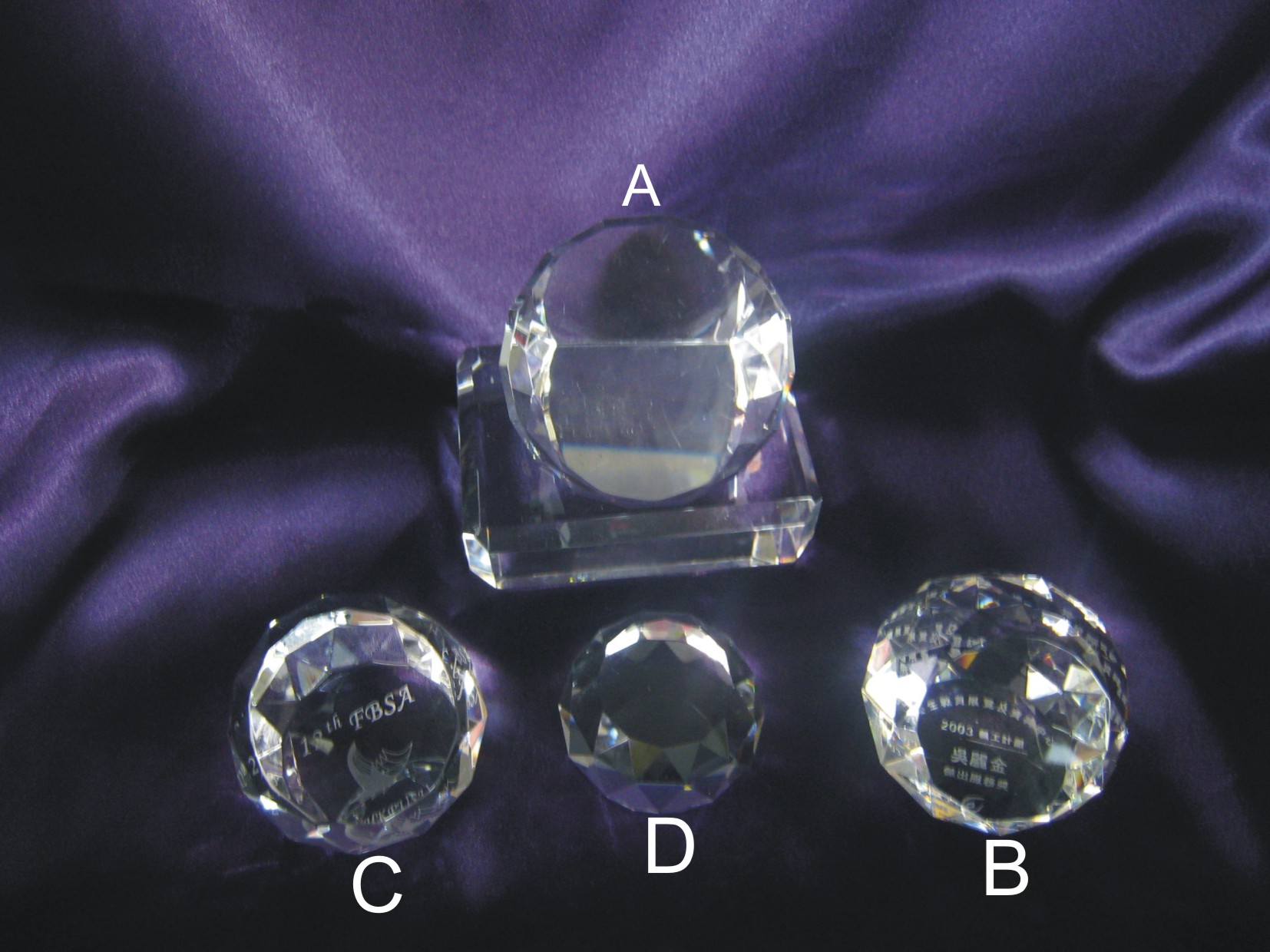 水晶( A - 60 X 60 X 50 ) ( B - 35 X 35 X 50 ) (C - 圓球40 X 30 X 30 ) ( D - 圓球40 X 底35 X 上25 )