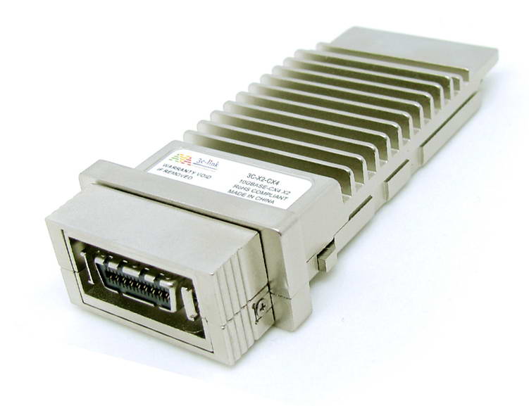 3C-Link 's 3C-X2-CX4 X2 10GB CX4 Electrical transceivers are designed for 10G Ethernet applications over industry standard CX4 copper cable assemblies, it is a hot pluggable module in the Z-direction that is mainly usable in typical router/switches line card applications. The MT1085 Module interfaces the host system across the XAUI four full-duplex 3.125Gigabaud transmit and receive channels and is managed through its MDIO/MDC interface. On the network side, MT1085 interfaces with standard CX4 cable assemblies using a 4X (8-signal pair) electrical receptacle connector. In addition, they comply with the X2 Multi Sourcing Agreement (MSA).